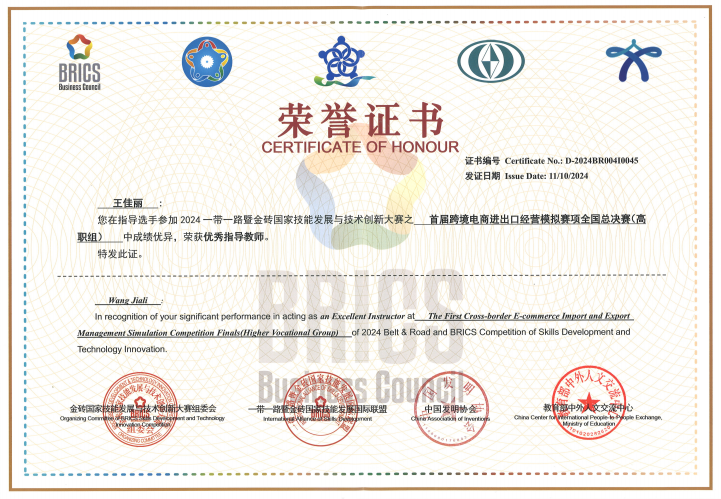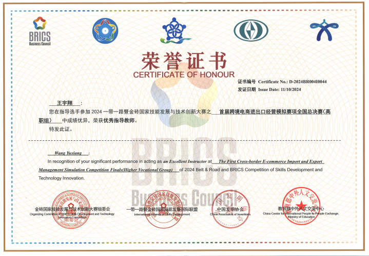 1110日,为期三天的“2024一带一路暨金砖国家技能发展与技术创新大赛首届跨境电商进出口经营模拟赛项国内总决赛”,在漳州职业技术学院圆满落下帷幕。来自全国各省市的99支队伍,共594名学生和老师齐聚一堂,共同见证了这场技能与智慧的较量。我校参赛队伍在此次大赛中表现出色,脱颖而出,荣获高职组二等奖,为我校赢得了高度的认可和赞誉。