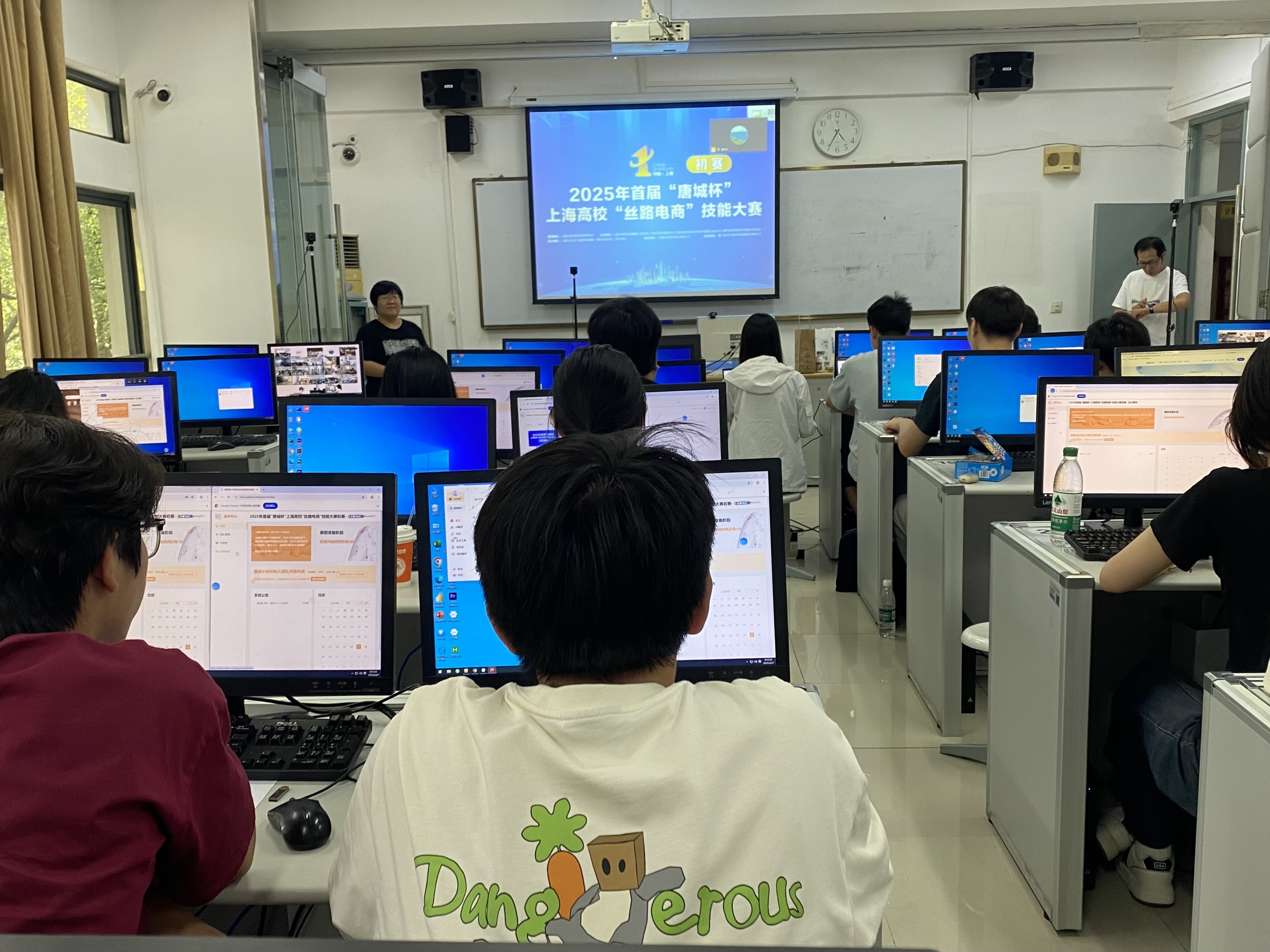 早在大赛初赛阶段,学校便以“实战为先”为导向,从暑假起开启了为期两个多月的系统性备赛工作。由王宇翔、王佳丽、杨顺、胡颖四位老师组成的指导团队,率先梳理出10余个核心国家的电商政策、消费偏好、物流规则等关键知识,夯实学生理论基础。为让学生快速适应竞赛节奏,指导团队还组织多次全流程集体训练:从跨境电商市场分析、跨境电商选品刊登、跨境电商供应链管理、出口订单处理、客户服务、海外推广、跨境电商运营决策;进口贸易洽谈签约、进口贸易海运报关报检、提货与仓储、国内店铺运营等操作,每一个环节都严格对标竞赛标准。