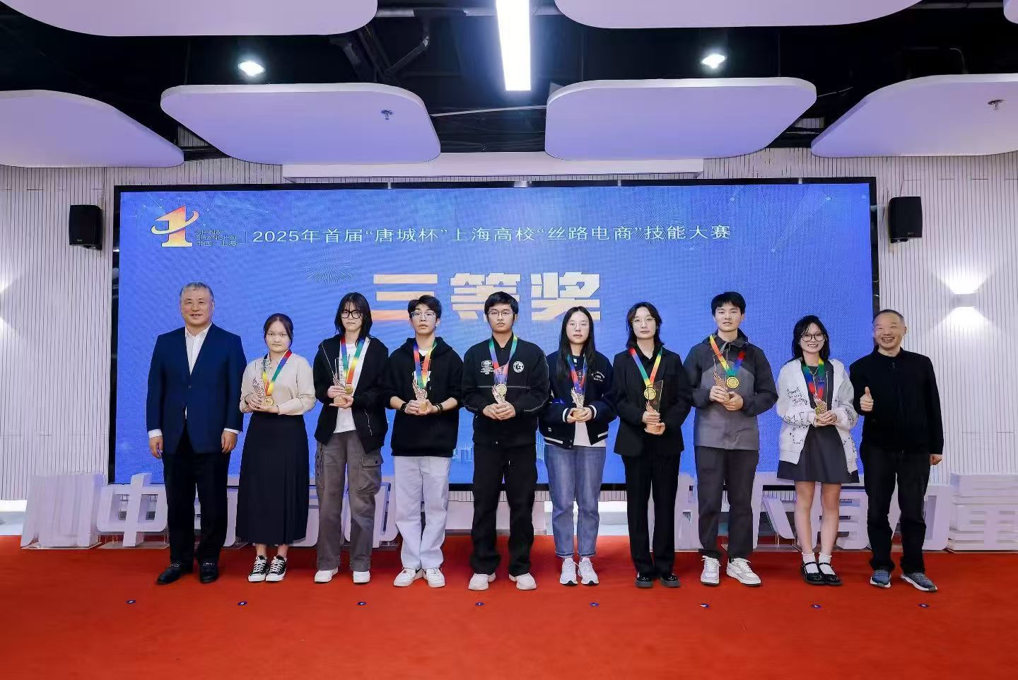 从初赛的激烈突围到决赛的荣耀绽放,我校学子在10月25日举办的“2025首届唐城杯上海高校丝路电商技能大赛”总决赛中一路披荆斩棘,最终从上海30余所高校的121支参赛队伍中脱颖而出6支队伍成功晋级总决赛(上海48支决赛队伍),收获2个二等奖,2个三等奖,2个优秀奖和2个优秀指导教师奖。